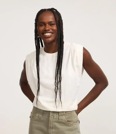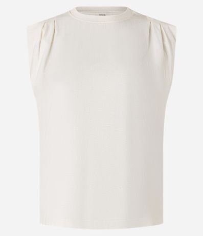 Blusa sem Manga em Algodão com Detalhe Franzido no Ombro