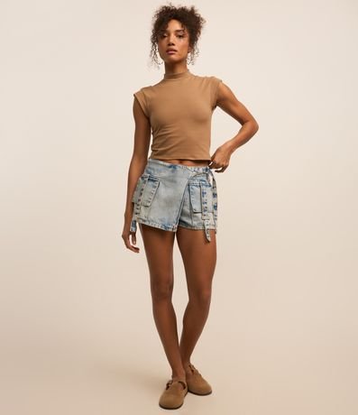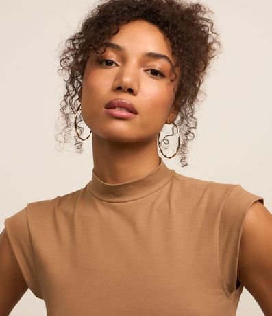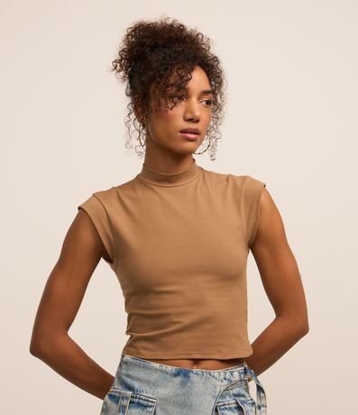 Ref: Blusa feminina confeccionada com algodão e elastano mais sustentável, gola alta e sem mangas.