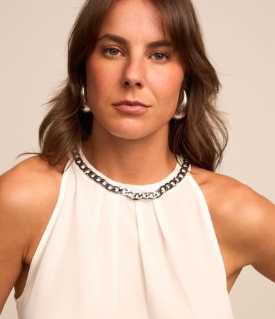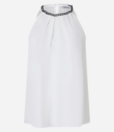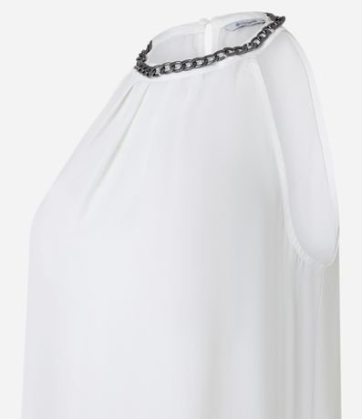 Ref: Blusa sem mangas confeccionada em crepe com gola redonda com correntinha metalizada. Possui cavas americanas.