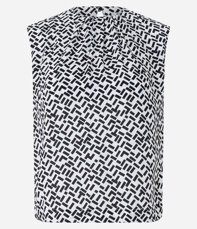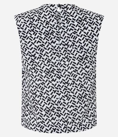 Blusa sem mangas em crepe com gola redonda, abertura traseira por gota e estampa geométrica.