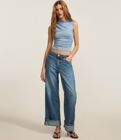 Ref: Blusa sem manga com golinha alta, confeccionada em jersey sem estampa e com drapeado lateral.