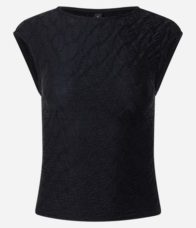 Blusa confeccionada em malha texturizada de poliéster, com superfície em relevo e toque leve. Modelo sem mangas com gola redonda e recorte aberto nas costas, garantindo visual moderno e fresco para compor looks casuais. Ideal para quem busca estilo com acabamento diferenciado.