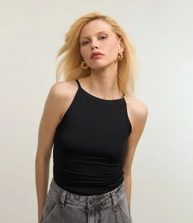 Ref: Blusa sem manga com gola halter e confeccionada em microfibra leve.