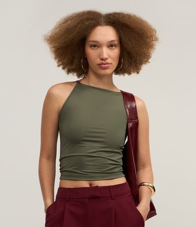 Ref: Blusa sem manga com gola halter e confeccionada em microfibra leve.