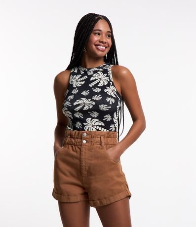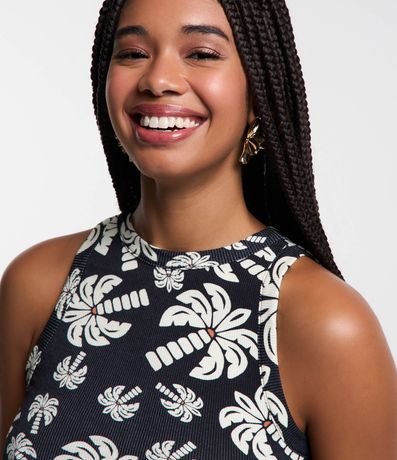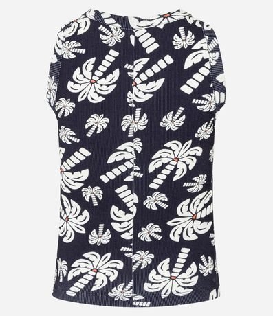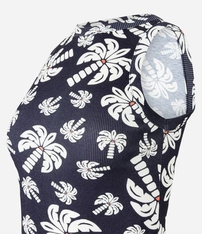 Ref: Blusa sem manga, confeccionada em ribana e com estampa tropical de coqueiros.