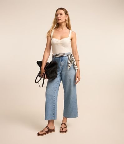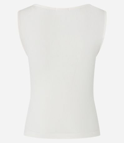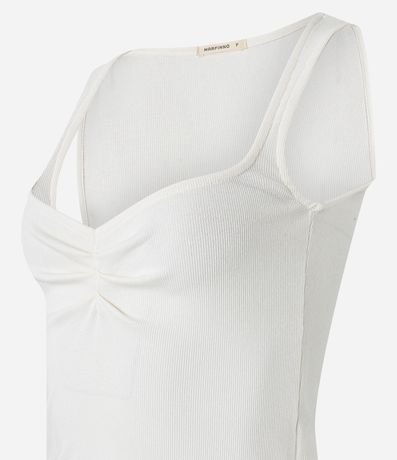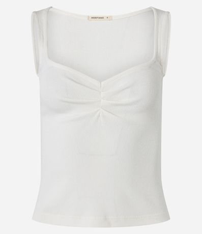 Blusa sem mangas com decote quadrado e franzidos no busto e textura canelada. Confeccionado em ribana de viscose mais sustentável. Possui modelagem ajustada.