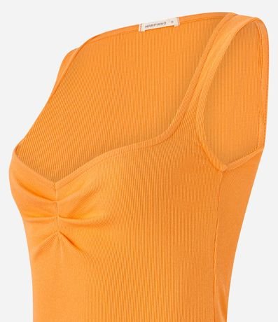 Blusa Sem Manga em Ribana com Franzido no Decote Quadrado