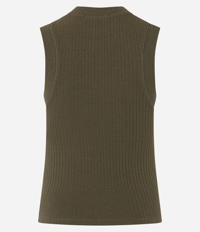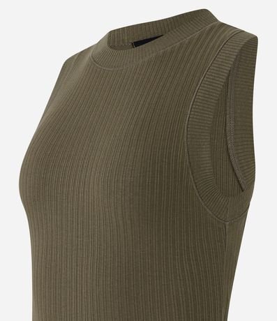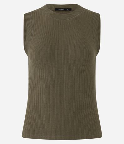 Blusa sem manga feminina, confeccionada em ribana, com gola redonda e textura canelada.
