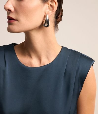 Blusa sem Manga em Tecido Acetinado com Detalhe de Pregas no Ombro