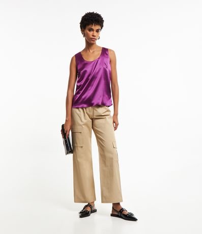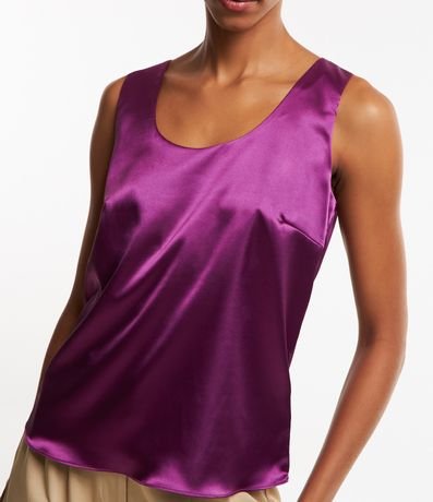Ref: Blusa sem manga em tecido acetinado, com decote U, alças médias e sem estampa.