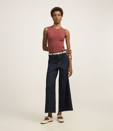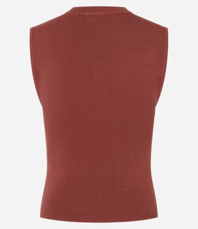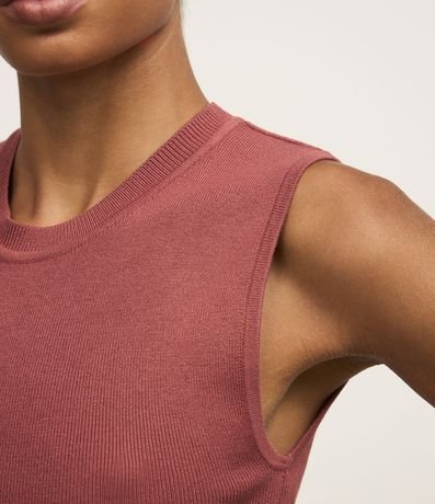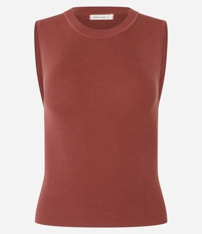 Ref: Blusa sem mangas confeccionada em tricô leve com gola redonda e textura canelada.