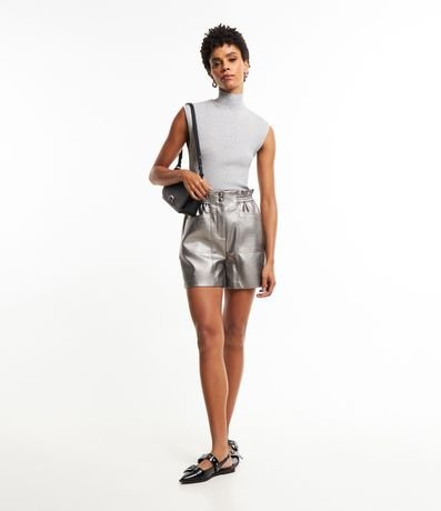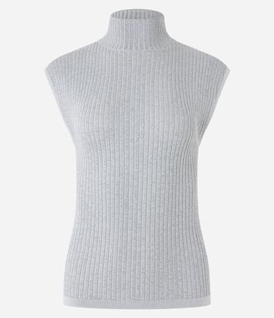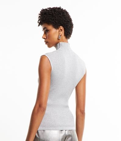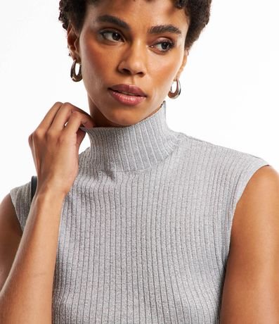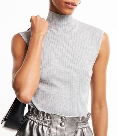 Ref: Blusa sem manga, texturizada, confeccionada em tricô e com golinha alta.