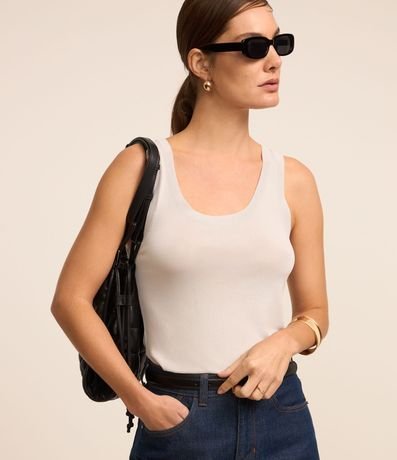 Blusa regata em tricô leve, com alças larguinhas, decote U careca e malha texturizada.