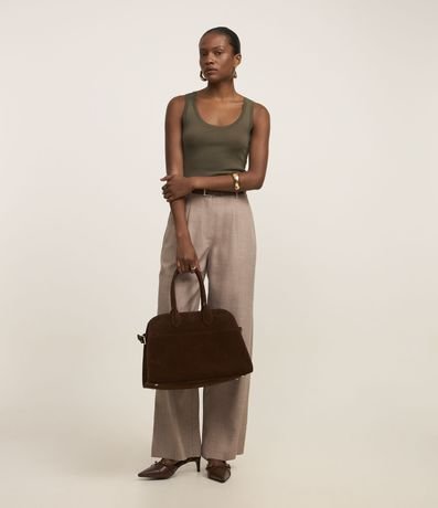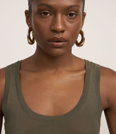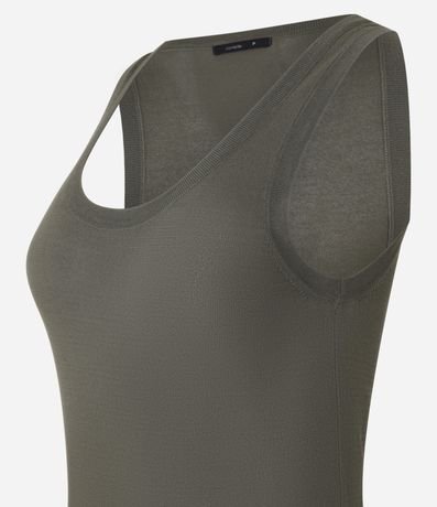Blusa regata em tricô leve, com alças larguinhas, decote U careca e malha texturizada.