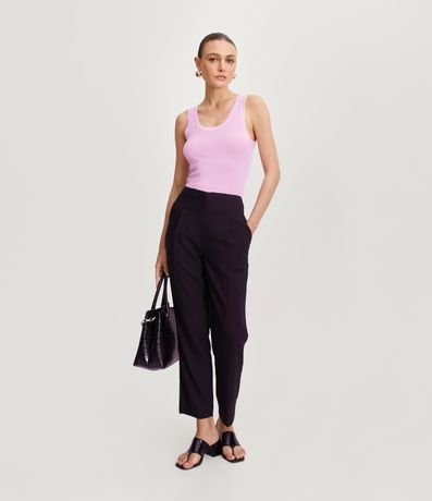 Blusa regata em tricô leve, com alças larguinhas, decote U careca e malha texturizada.