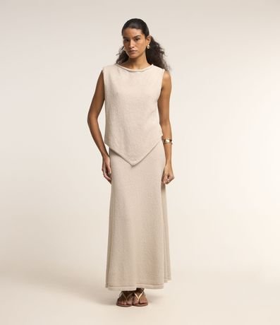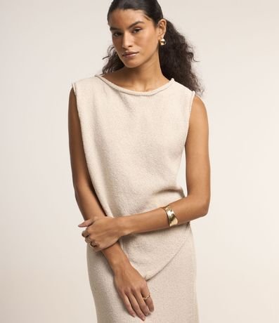 Ref: Blusa sem manga em tricot com decote careca e barra assimétrica.
