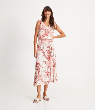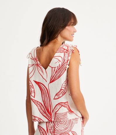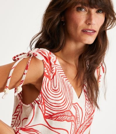 Blusa Sem Manga em Viscolinho com Amarração e Folhagens Estmpadas