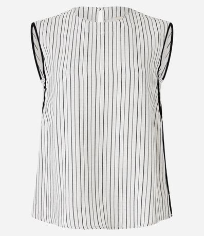 Ref: Blusa sem manga, confeccionada em viscolinho, fechamento gota nas costas e listras em fio tinto.