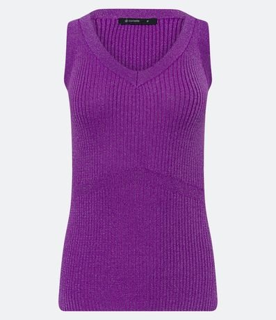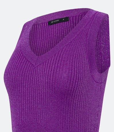 Ref: Blusa sem mangas em viscose com alças largas, textura canelada e fios metalizados.