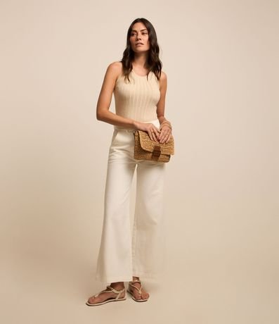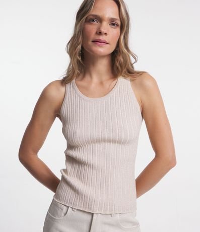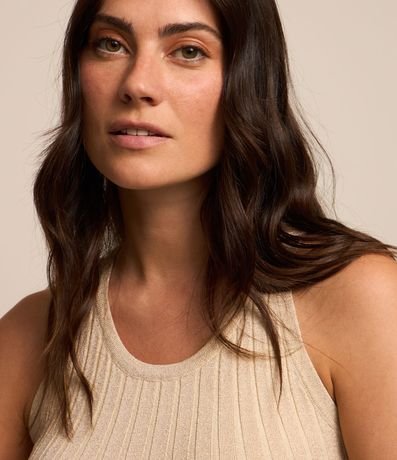 Ref: Blusa sem manga, em viscose com textura canelada e com fio metalizado.