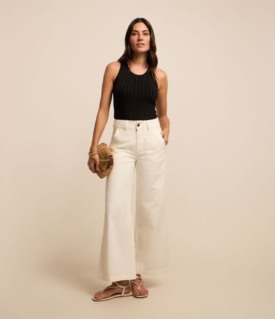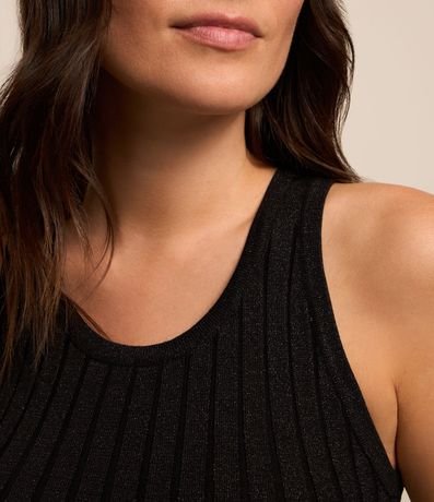 Ref: Blusa sem manga, em viscose com textura canelada e com fio metalizado.