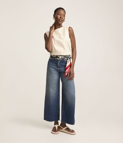 Blusa sem manga,confeccionada em viscose com detalhes na barra e recortes frontais.