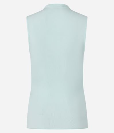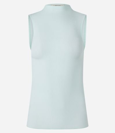 Blusa sem manga em viscose, com gola alta, textura canelada e superfície sem estampa.
