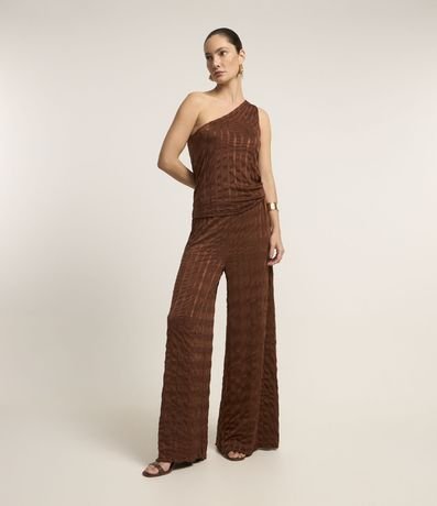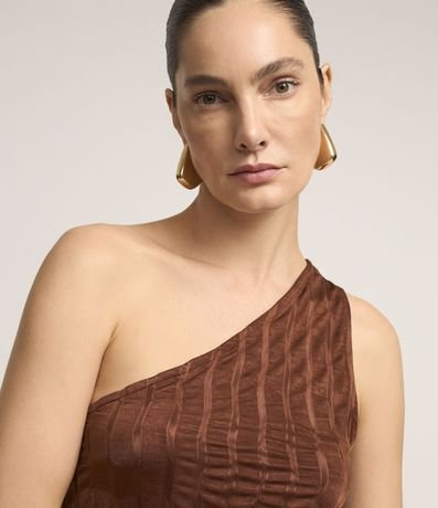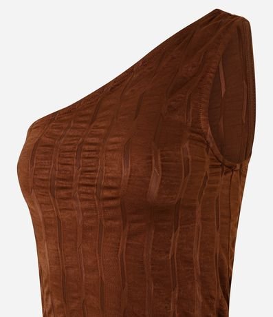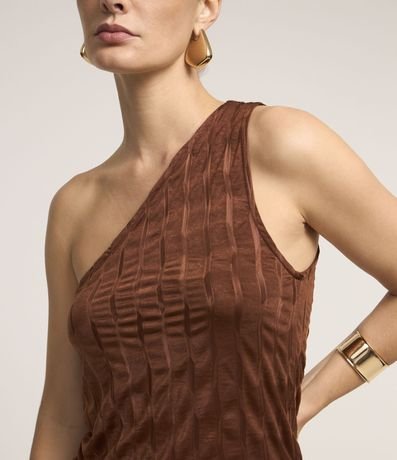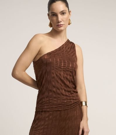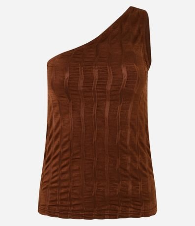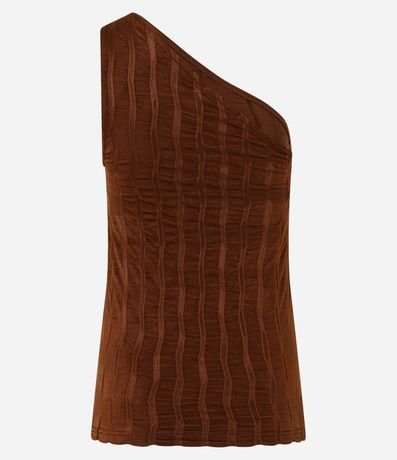 Ref: Blusa sem mangas com decote ombro único, malha texturizada e barra nuvem.