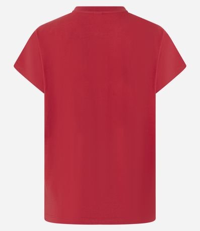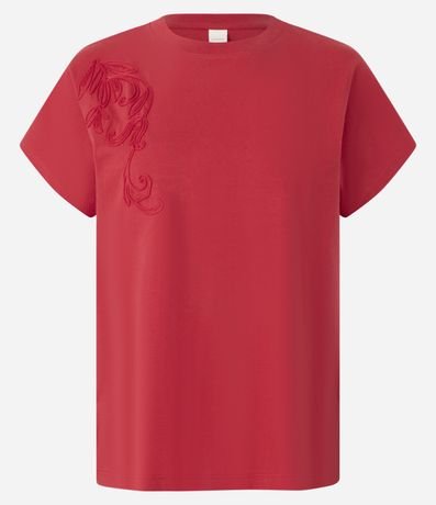 Ref: Blusa slim de mangas curtas, em algodão, com gola redonda e bordado de folhagem. Este produto possui algodão certificado em sua composição, sendo ambientalmente mais responsável.
