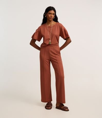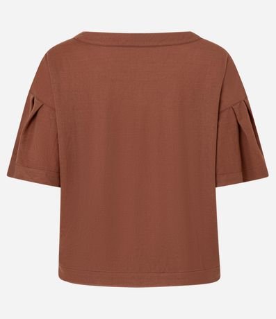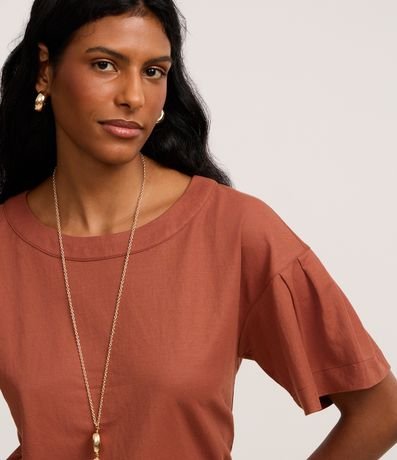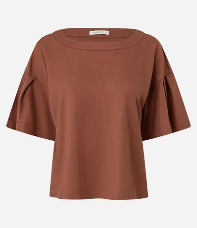 Ref: Blusa feminina confeccionada em tecido piquet com viscose certificada, garantindo leveza e ótimo caimento. Possui modelagem t-shirt box, decote redondo e mangas curtas com pregas, trazendo um toque moderno e sofisticado