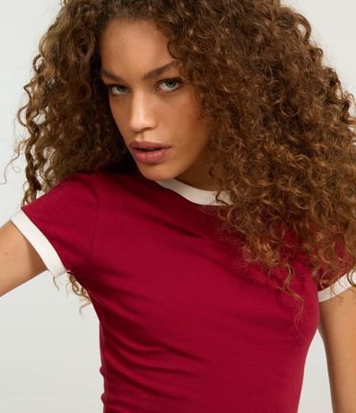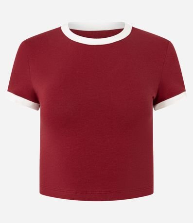Blusa new t-shirt com gola redonda contrastante, confeccionada em algodão mais sustentável e sem estampa.