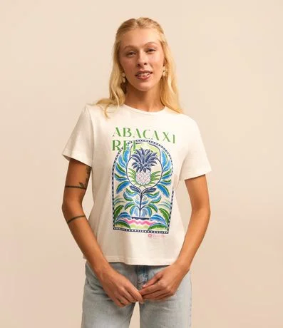 Ref: Blusa t-shirt com mangas curtas, confeccionada em algodão mais sustentável e estampa frontal Abacaxi Rei.