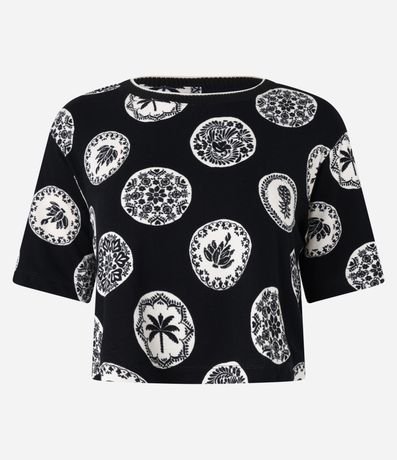 Blusa T-shirt em Algodão com Estampa Tropical