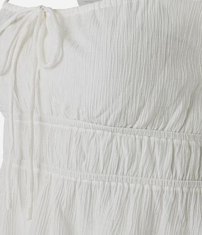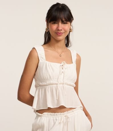 Blusa texturizada, confeccionada em viscose certificada mais sustentável, amarração no busto e sem estampa.