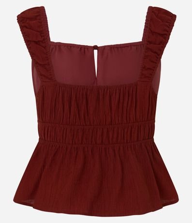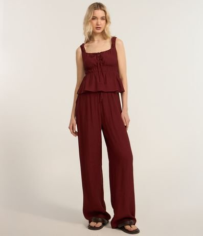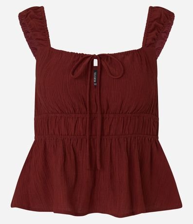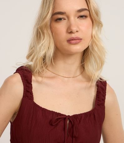 Blusa texturizada, confeccionada em viscose certificada mais sustentável, amarração no busto e sem estampa.