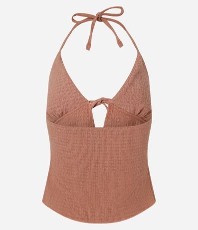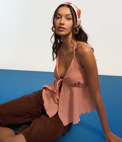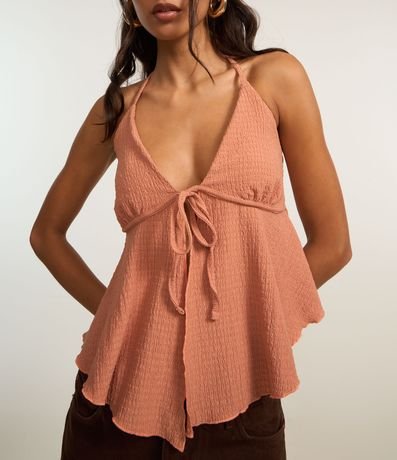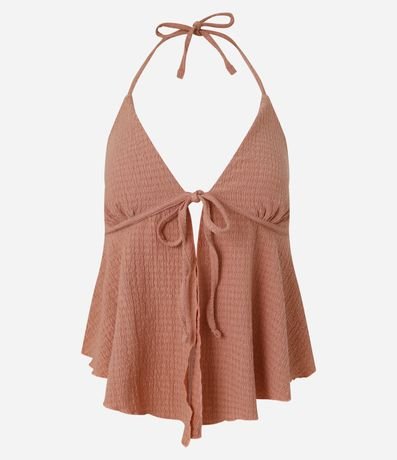 Blusa de alcinha fina com amarração no pescoço, texturizada soltinha e com amarração no busto.