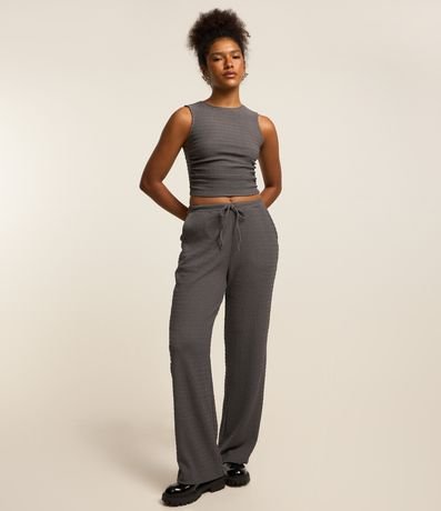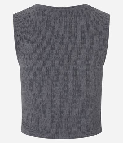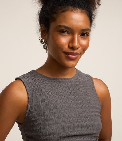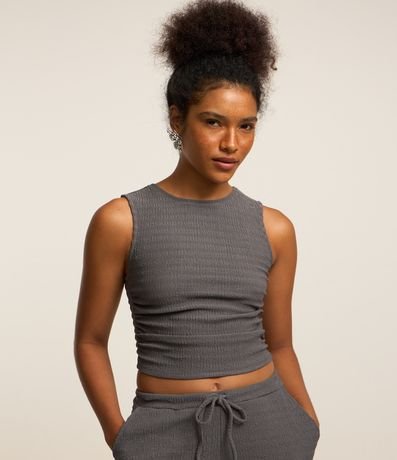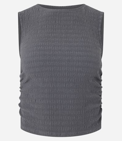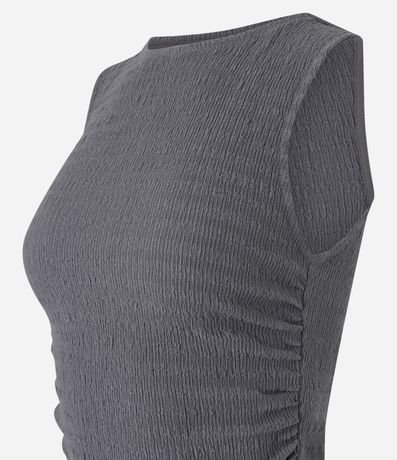Blusa sem manga com textura e franzidinho na lateral, sem estampa.