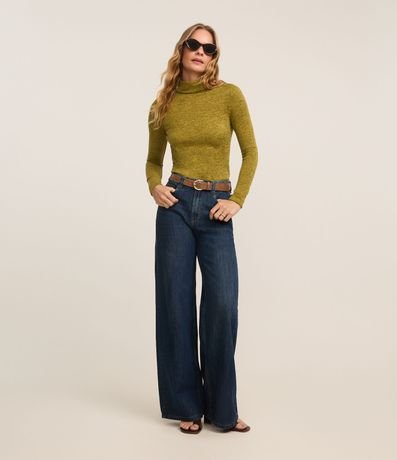 Blusa de mangas longas, com golinha alta e tecido todo texturizadao.