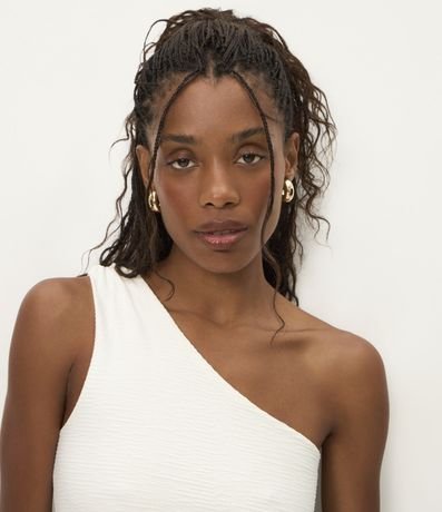 Ref: Blusa de decote ombro único, sem mangas, confeccionada em anarruga. Roupa texturizada. Este produto possui material mais sustentável em sua composição, sendo ambientalmente mais responsável.