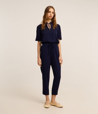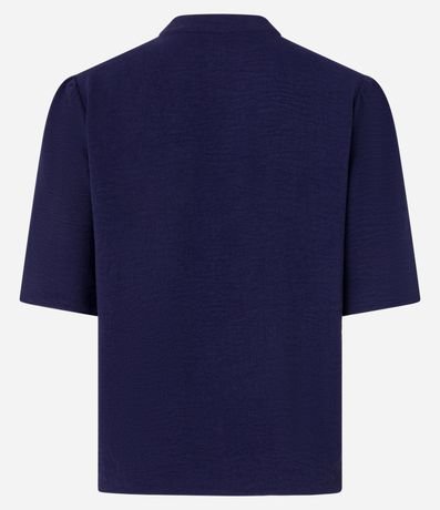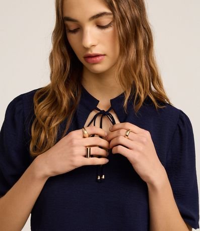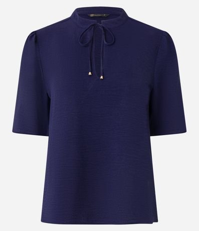 Ref: Blusa de mangas curtas, confeccionada em airflow, com gola redonda com amarração com ponteiras metalizadas. Peça conta com tecido texturizado. Este produto foi fabricado através de processos mais sustentáveis, adotando boas práticas ambientais.