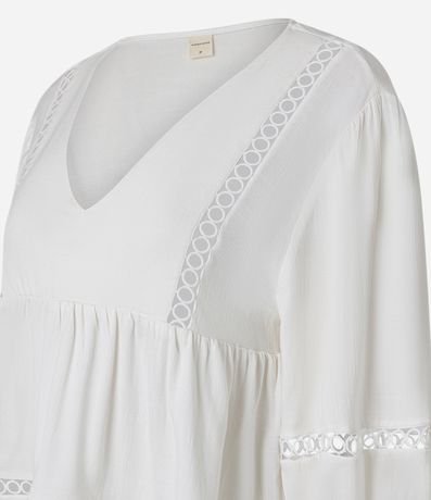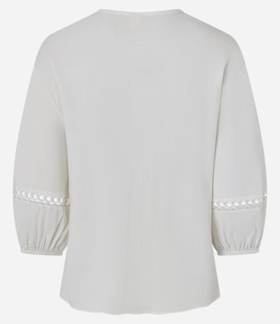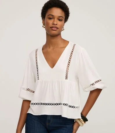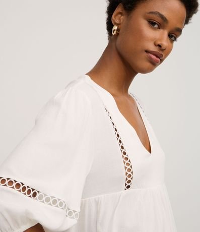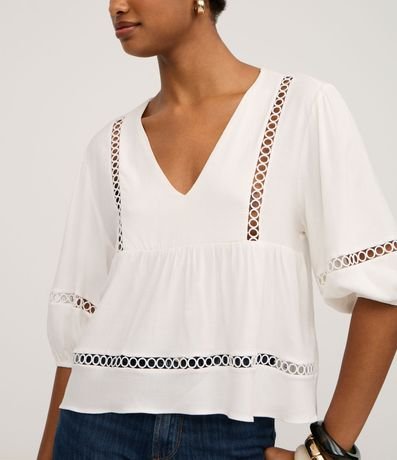 Ref: Blusa de mangas curtas, confeccionada em viscose texturizada, com decote V, recorte franzido abaixo do busto e recortes de entremeios. Este produto possui viscose certificada em sua composição, além de ter sido produzido através de processos mais sustentáveis, sendo ambientalmente mais responsável.