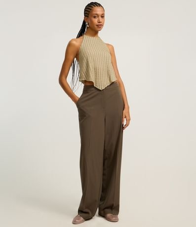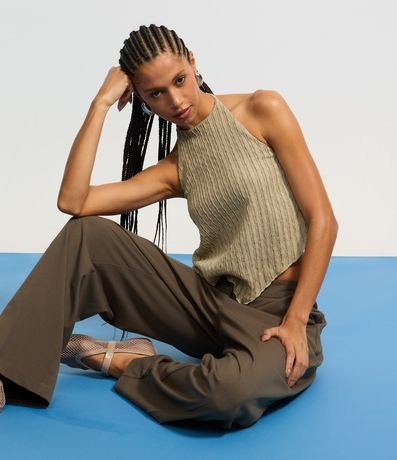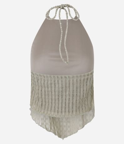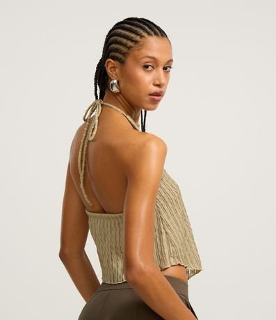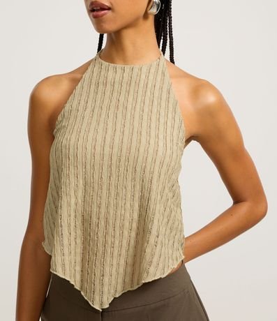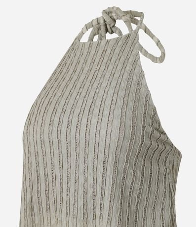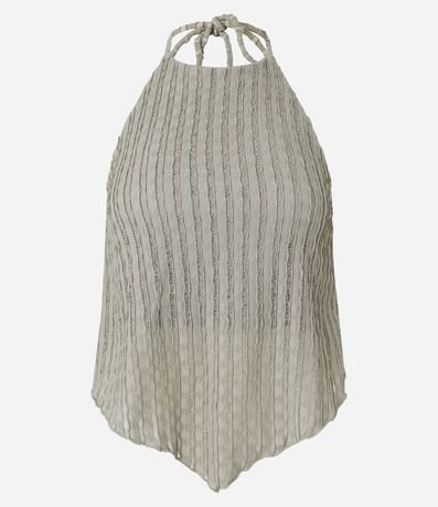 Blusa frente única com amarração no pescoço e listrinhas texturizadas.