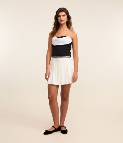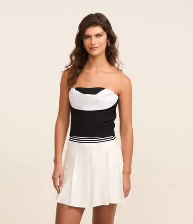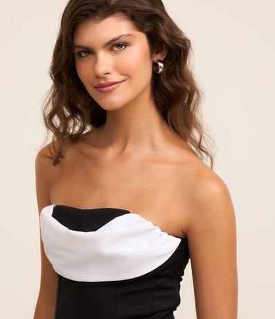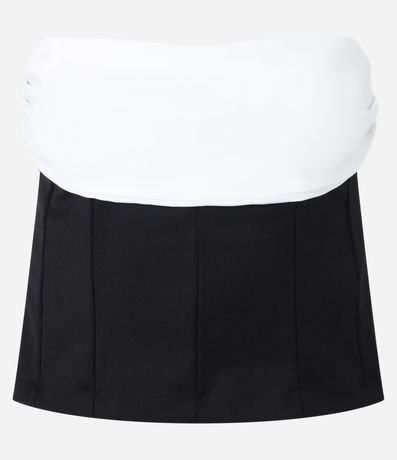 Ref: Blusa com decote tomara que caia, detalhe no busto contrastante com drapeados, produzido em boas práticas ambientais e em alfaiataria.