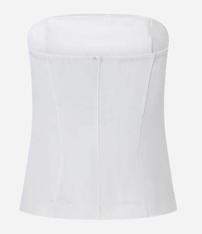 Blusa sem mangas em crepe com corte alfaiatado e dobra no decote tomara que caia.