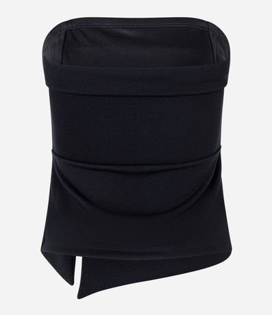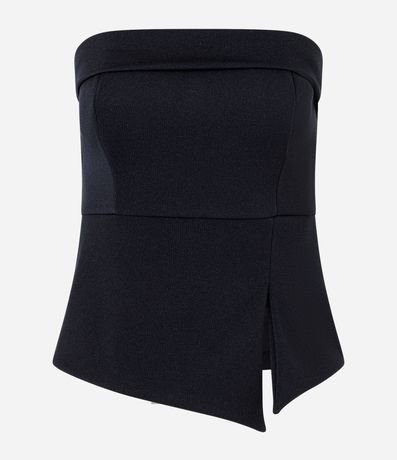 Blusa tomara que caia, confeccionada em crepe com pala dobrada e fendinha na barra.