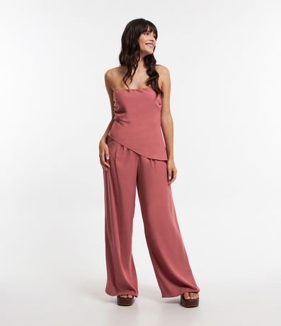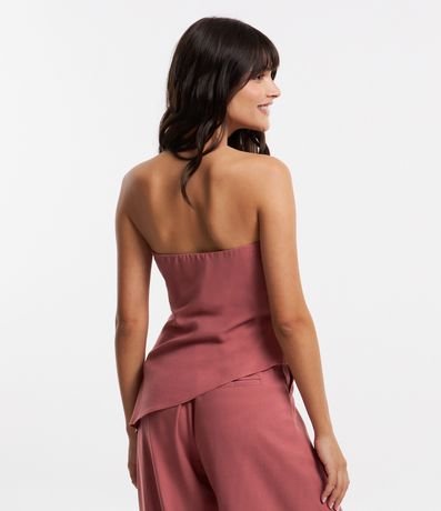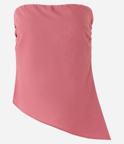Ref: Blusa tomara que caia, confeccionada em linho e barra assimétrica.