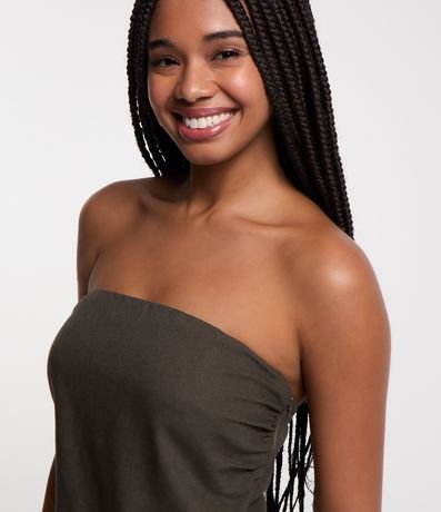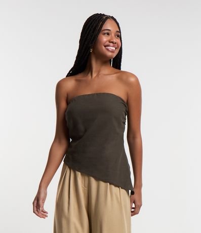 Blusa Tomara que Caia em Linho com Barra Assimétrica