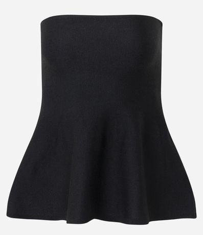 Blusa Tomara que Caia em Tricô com Peplum na Barra