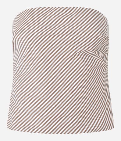 Blusa sem alças confeccionada em tricoline com decote reto e lastex nas costas e listras diagonais.