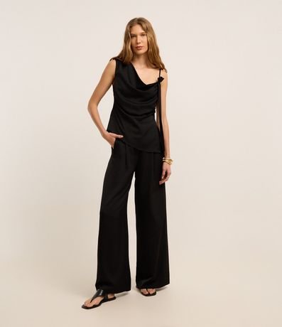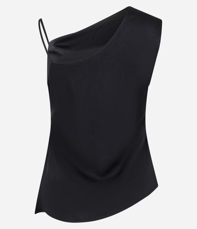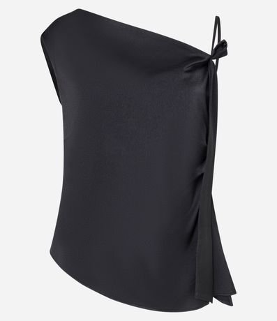 Blusa Túnica em Alfaiataria Acetinada com Ombro Único e Faixa